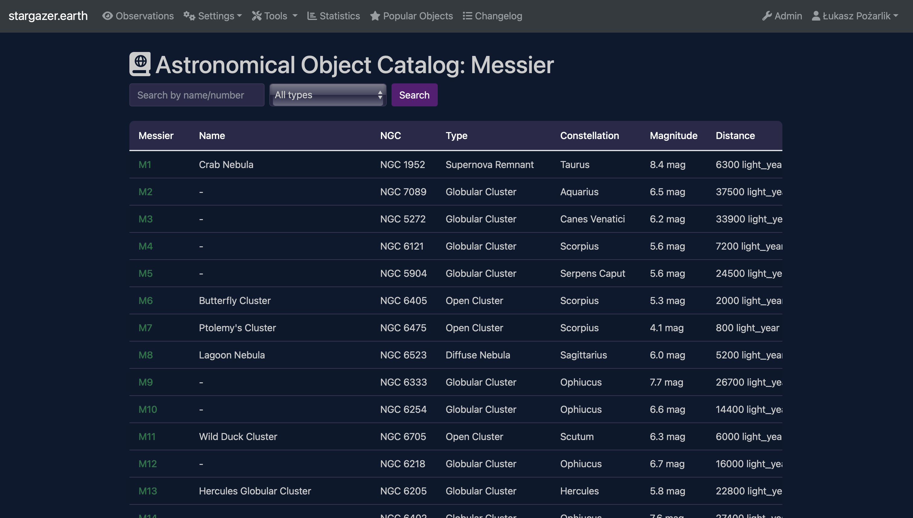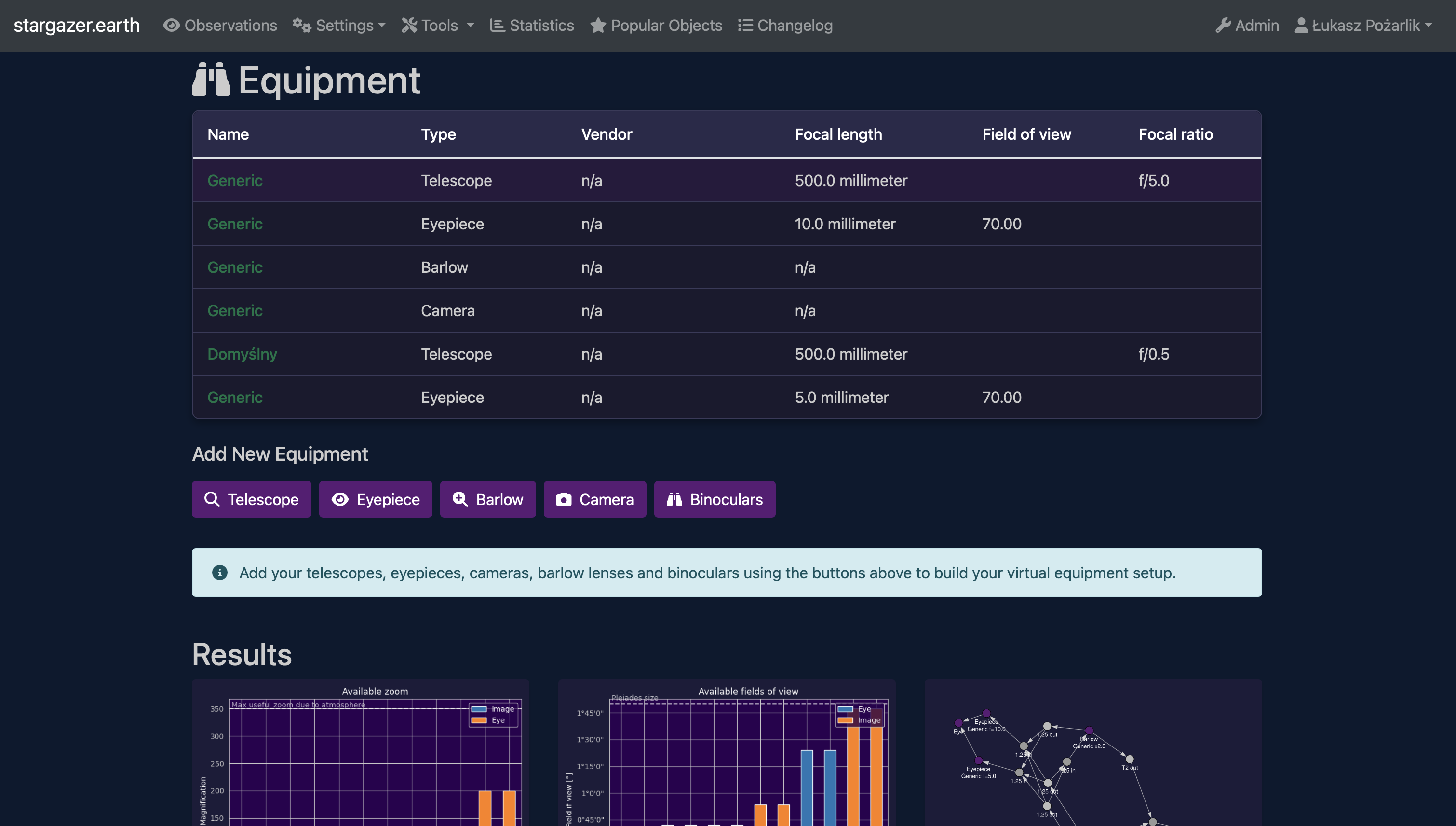 Manage Your Equipment »Astronomical Observation Logging